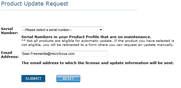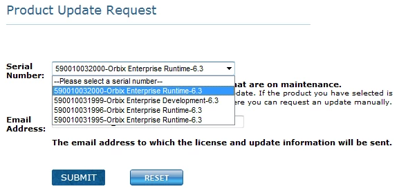 - Select the Serial Number from the drop down list to upgrade, in this case Orbix Enterprise Runtime serial number.