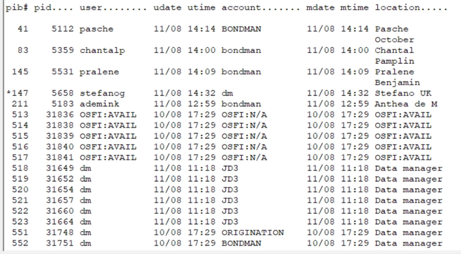 pib# user.......... udate utime account.......... mdate mtime location.......