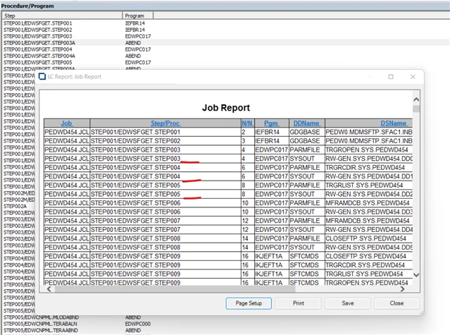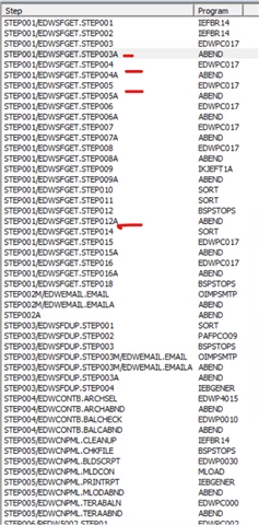 As you can see in the screenshot above, the ABEND steps are being displayed under the proc/prog window but upon generating the report, the said step were excluded.