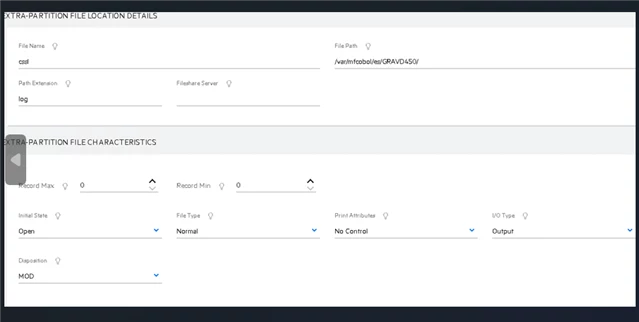 we define an extra partition TD queue pointing to an existing file and an existing path with initial state = open , file type=normal. print attributes= No control , I/O type=Output and Disposition =MOD