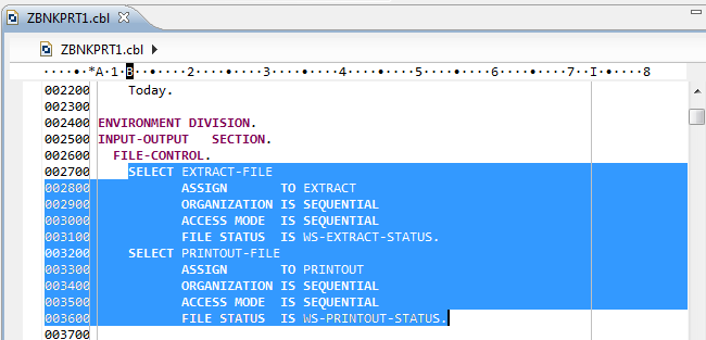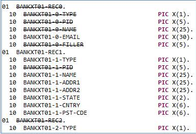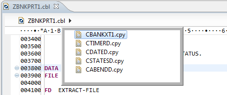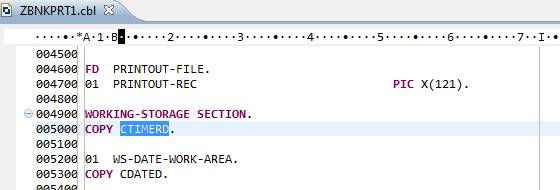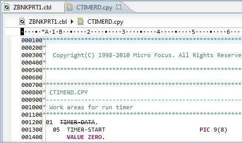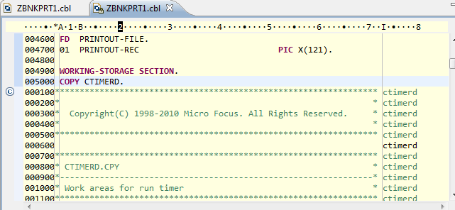 5. Note the two tabs. You will see in the copy file tag, this is the view of this copy file inside the COBOL program.