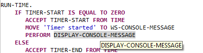16. Hold the Ctrl key down and move your mouse around the code. You will see that hyperlinks are created to data items and paragraph names.