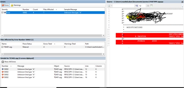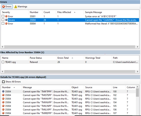 we are facing the below error if we try to add 1 rpg file with related copybook files. could you please help on the below error.