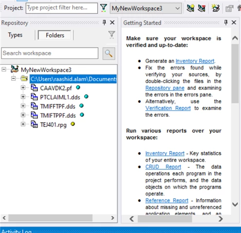 Currently we created new file as rpg file in Enterprise Analyze workspce and trying to execute the code.