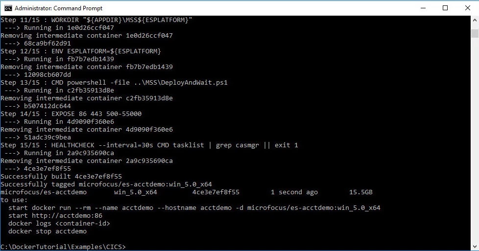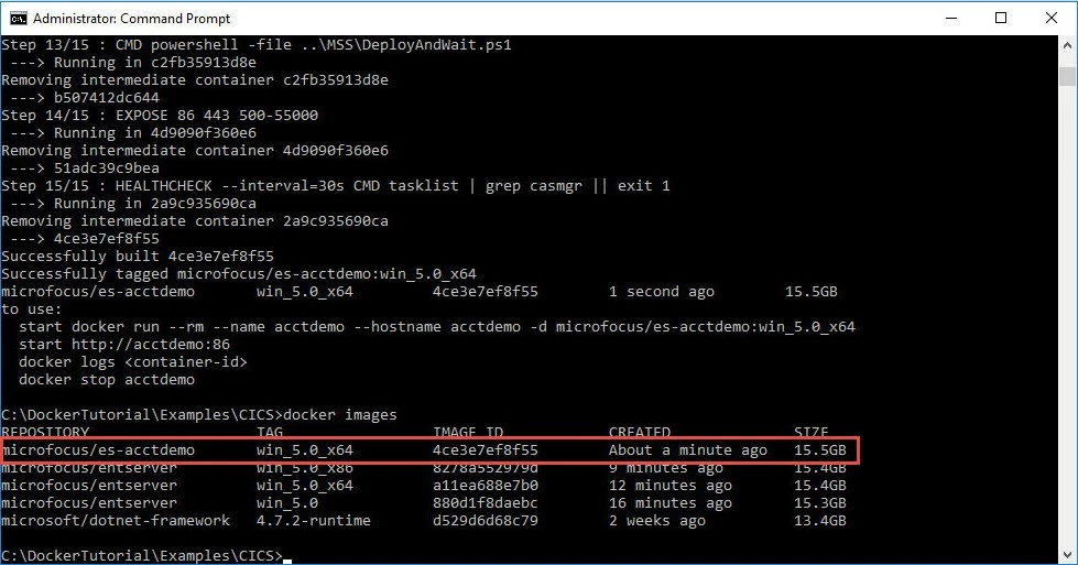 Note: If you created a 32-bit version of the image, the name of the image would be microfocus/es-acctdemo:win_5.0_x86 instead of microfocus/es-acctdemo:win_5.0_x64.