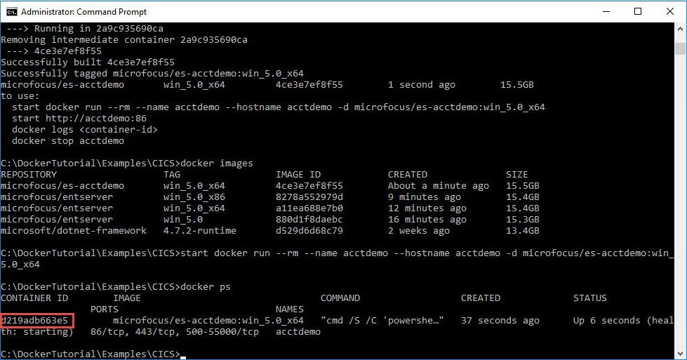 This article is a tutorial to supplement the documentation that is supplied with Enterprise Server. It shows how to get started with some of the Docker demonstration files that are supplied with Enterprise Server in order to run a CICS application in a Docker container on Windows.