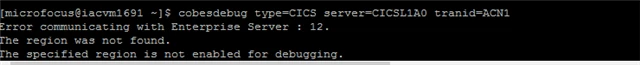I am trying to debug a CICS program from Linux command line ( i dont have Linux GUI) using cobesdebug program but i get the attached error