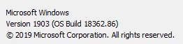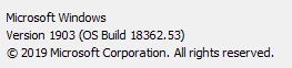 2) Windows 10 Version 1903 (OS Build 18362.53 or OS Build 18362.86).