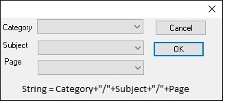 msgbox str(Left(myCategory(DlgValue(DlgControlID("Category"))), 3) & " " & Left(mySubject(DlgValue(DlgControlID("Subject"))), 3) & " " & myPage(DlgValue(DlgControlID("Page"))))