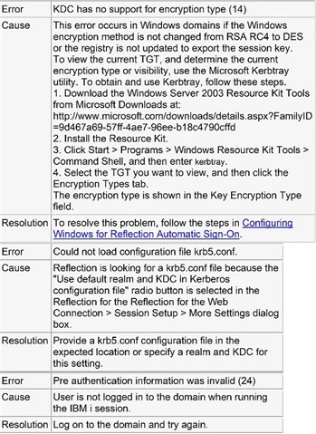 The features of Kerberos that are used by Reflection for the Web require that Windows user accounts be configured to use DES encryption. By default, Windows uses RSA emulation.