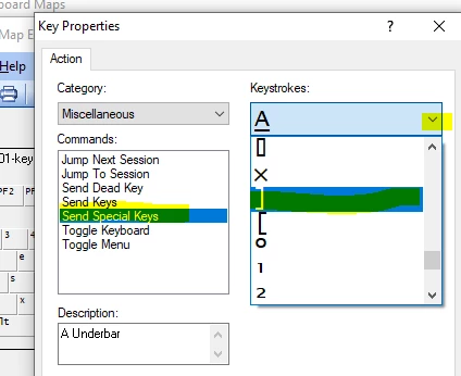 Mainframe 3270 connection, using the IBM 101 keyboard mapping, when I press the left square brackets [ I get a "cent" sign, where is this mapped? How do I make the bracket appear correctly. Other emulators work fine, but having this issue with Extra?