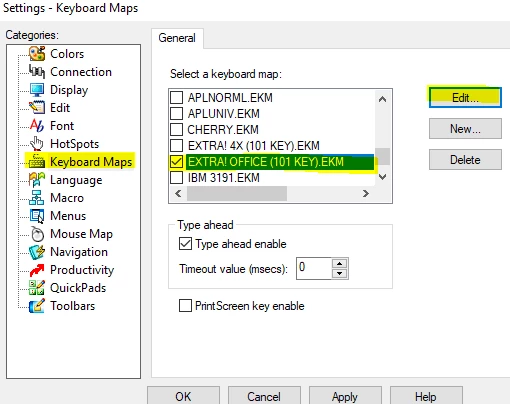 - Edit the default map, EXTRA! Office (101 Key).ekm.