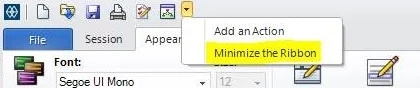 Sometimes it is desirable to minimize the Ribbon in order to have more space on your desktop. This can be achieved in two ways: