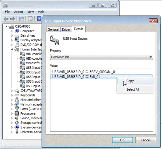Figure 2. Copy of Hardware Id in USB Input Device Properties