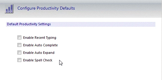Figure 5. Configure Productivity Defaults menu with features deselected
