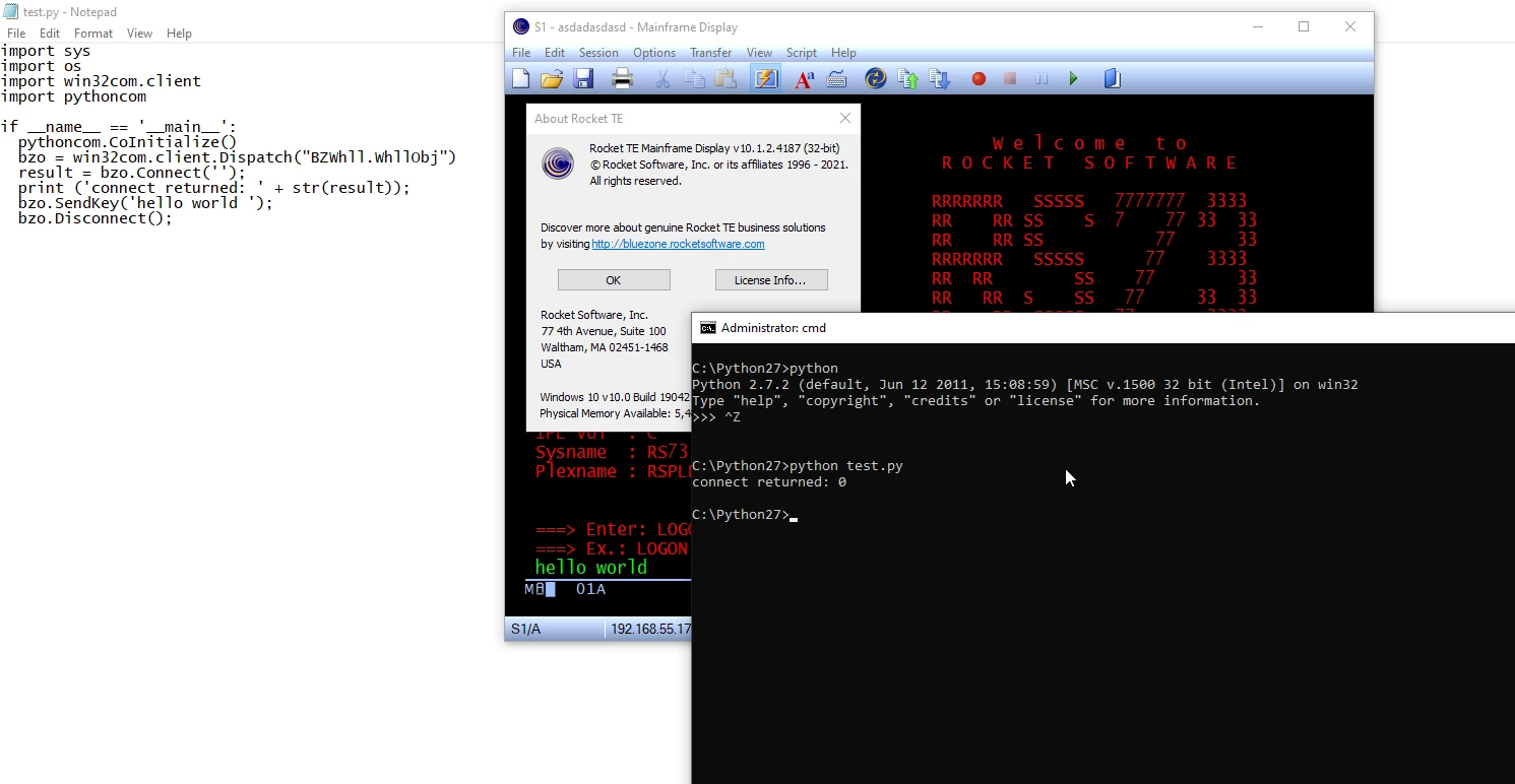 >>> bzo = win32com.client.Dispatch("BZWhll.WhllObj")