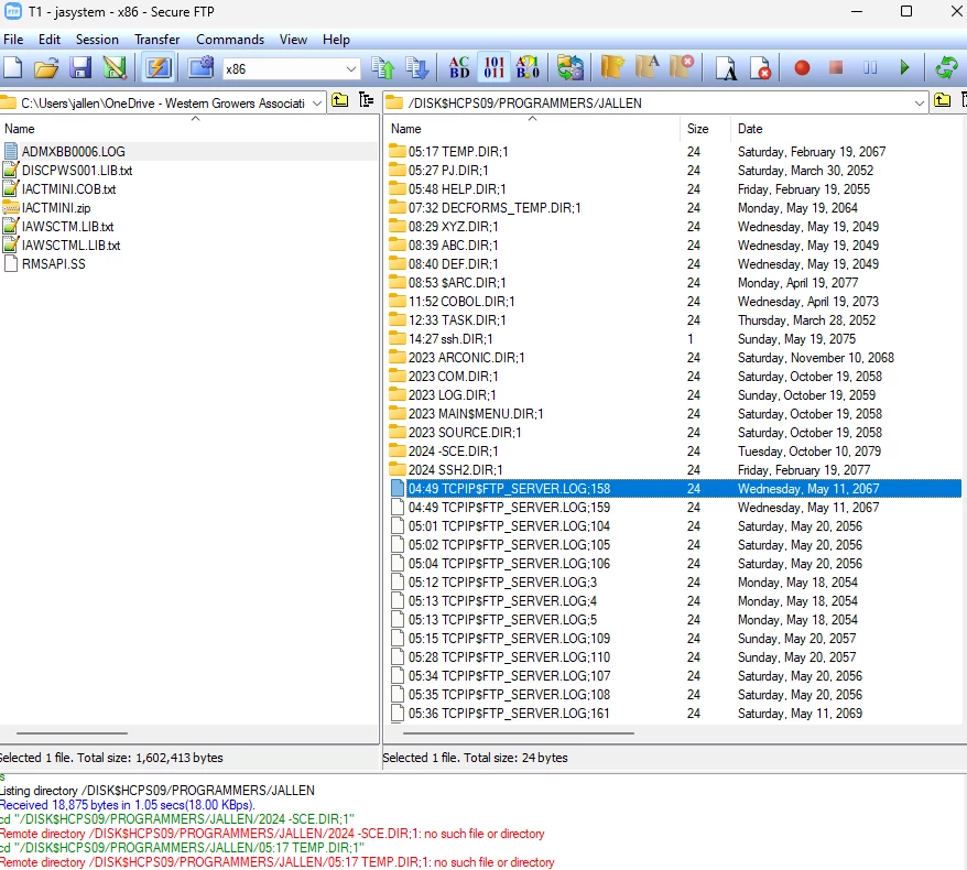 Interesting. Rocket TE SFTP behaves normally on Alpha (v8.4) and Itanium (v8.4-2L1) versions of OpenVMS but acts "funny" only on X86 (V9.2-3).