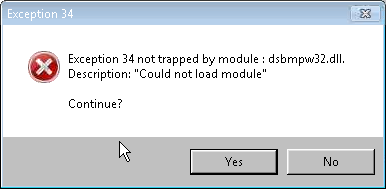 Exception 34 not trapped by module: dsbmpw32.dll.