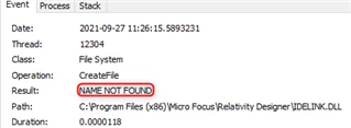 I believe that IDELINK.DLL is only found in the Mainframe Express product which is very old. It could be that Relativity is finding an older version of the CBLRTSS.DLL file, which is the COBOL run-time system. In your procmon trace look for occurrences of CBLRTSS to see where it is being located...