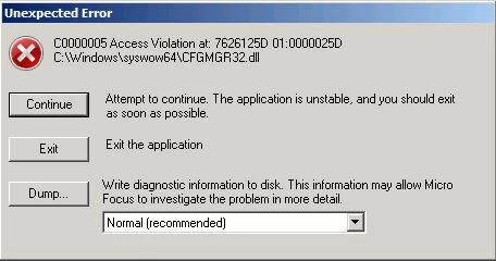 Net Express 5.1 fails to start from the shortcut and from the command line with MFNETX.EXE and reports an access violation on CFGMGR32.DLL.