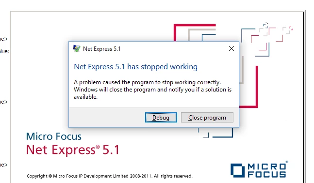 When running the application the CBL_DEBUGBREAK is either totally ignored or sometimes prompts. When it prompts NetExpress loads and then crashes.