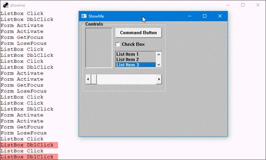 I just ran the showme program, and I AM able to double click on the list box and get the same results you did.