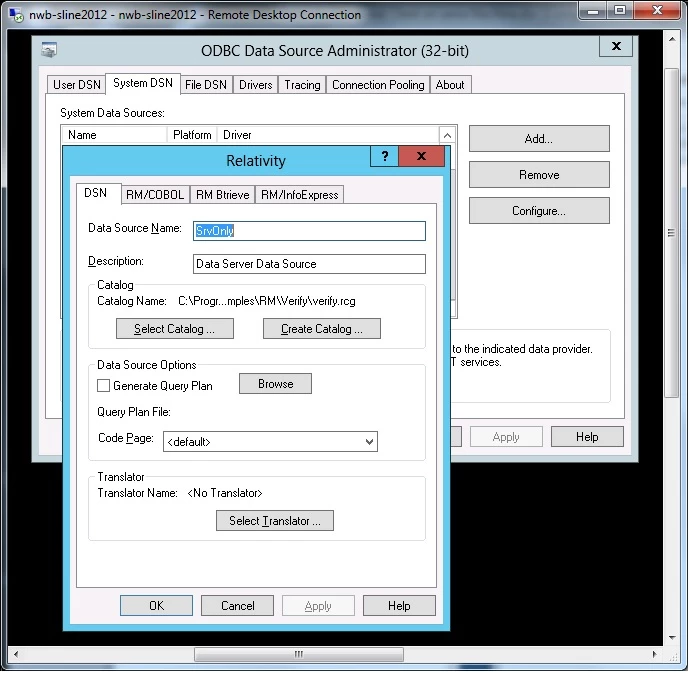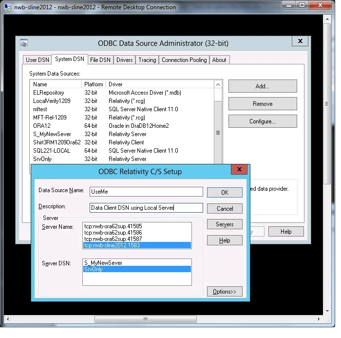 Clients should never connect directly to the Data Server ODBC data source. A client ODBC data source must be configured on the server and the clients then use the Relativity client ODBC data source.