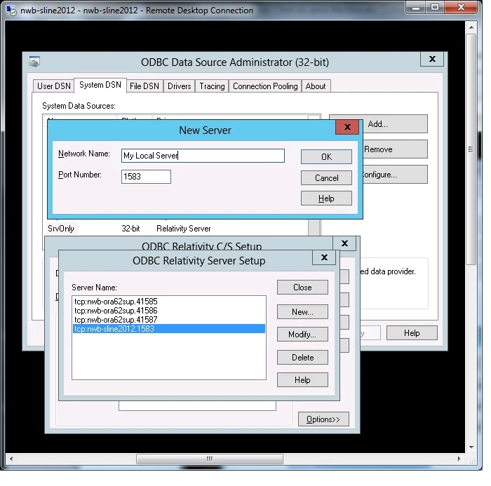 To configure the Relativity client ODBC DSN, you perform the following steps: