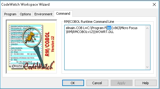 rmcw elmain.COB L="C:\\Program Files (x86)\\Micro Focus\\RM\\RMCOBOLv12\\WOWRT.DLL"