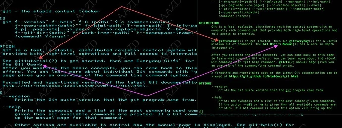 When I type “man git”, the second paragraph of the DESCRIPTION section gets truncated, such as the second line of the example: