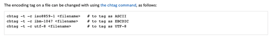 For starters, there is some confusion about the tagging of USS files. Does tagging files mean assigning a CCSID, such as IBM-1047/ISO8859-1/UTF-8 ? Does tagging mean turning on the eligible flag for auto-conversion ? or is it both ? Looking at the Rocket's installation information for 2.26.2 (the one I have installed) it seems to mean both.