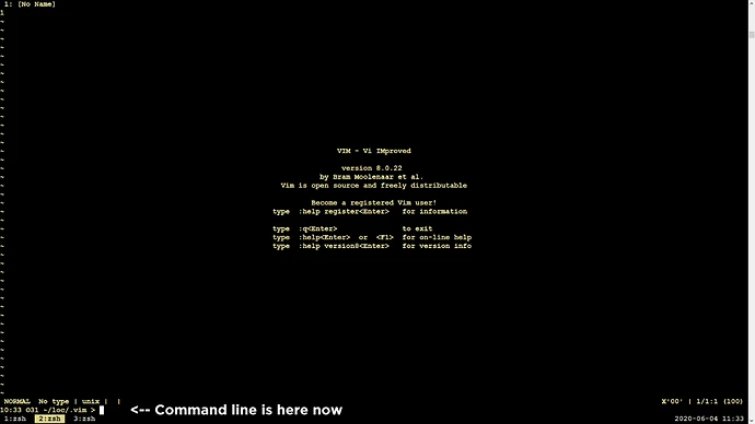 - Note that the command line is redrawn at the top, and that the rest of the screen is still there.