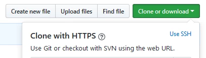 Go to the repository on GitHub that you wish to clone and click on the green “Clone or download” button towards the right side of the page. A suggested starter repository is https://github.com/zorts/hello_world; this repo contains an example of a .gitattributes file that arranges for text files to be encoded and tagged as EBCDIC. Make sure you chose the SSH URL. Copy the URL and then insert it into this command on z/OS:
