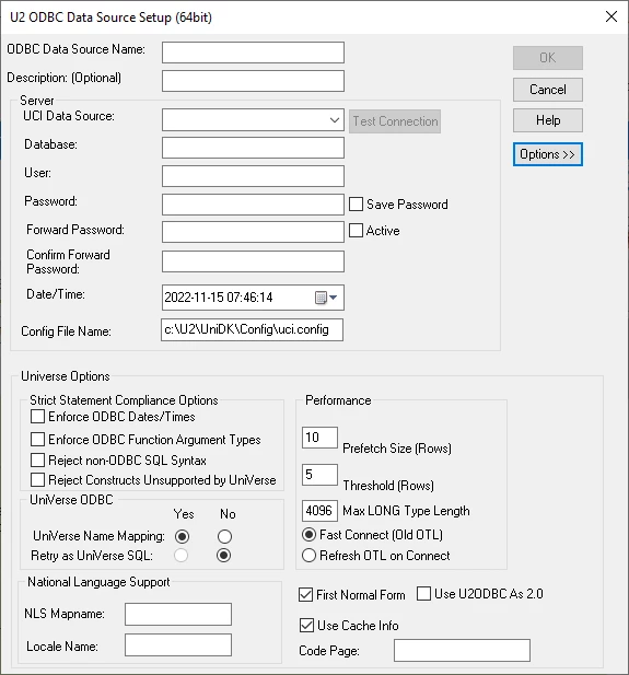 When it comes to your other questions, this is my first time working with Rocket Software and their database platforms. I am not familiar with UniVerse, nor do I have an account. I only installed the ODBC drivers, as I have no experience using the TCL tool or the XDEMO account. I only have experience with Oracle and SQL Server. I've only dabbled in DB2 via ODBC drivers and was hoping I could do the same here with this UniVerse database.