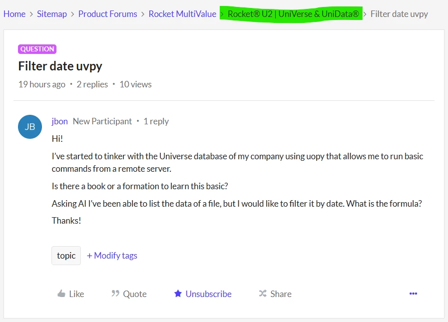 I’ve started to tinker with the Universe database of my company using uopy that allows me to run basic commands from a remote server.
