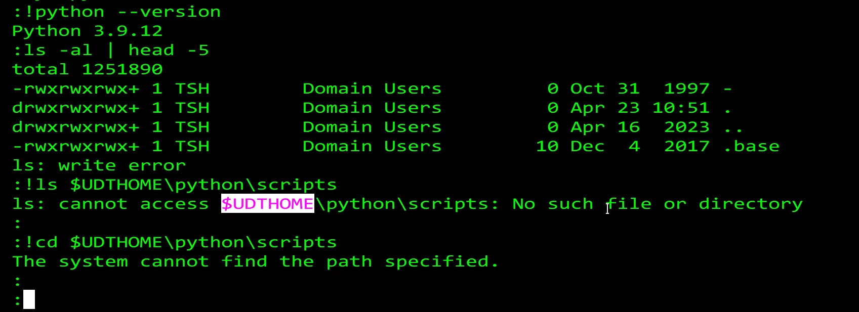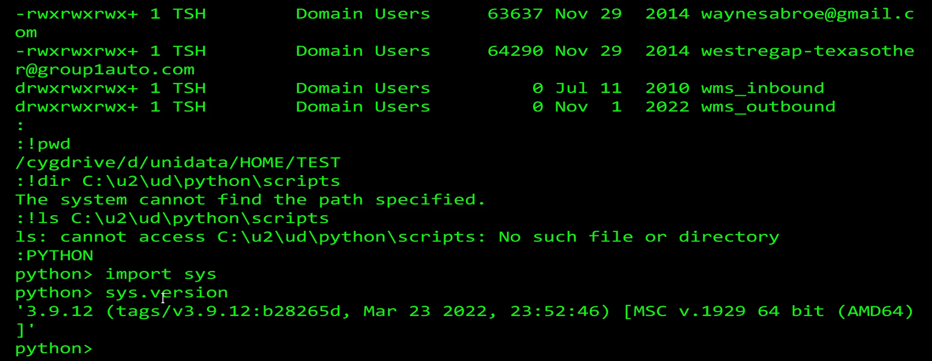 Then do a !dir command as below to see what's in the script directory UniData's version of python.