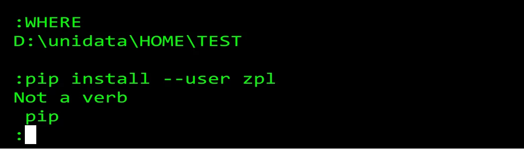 or if you want to install it from the ECL prompt in UniData prefix the command with a ! (i.e !pip install ...)