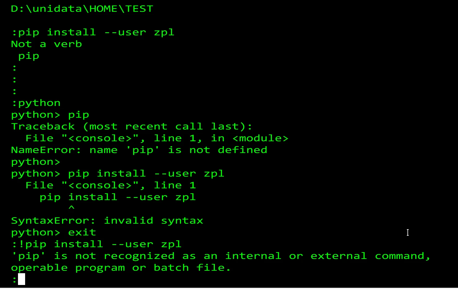 I didn't see the second part of the screen in the email , the reason why the !pip command failed is because the shell invoked by UniData cannot find pip. This generally means your path environment variable is not setup correctly as it cannot find the pip executable or pip hasn't been installed.