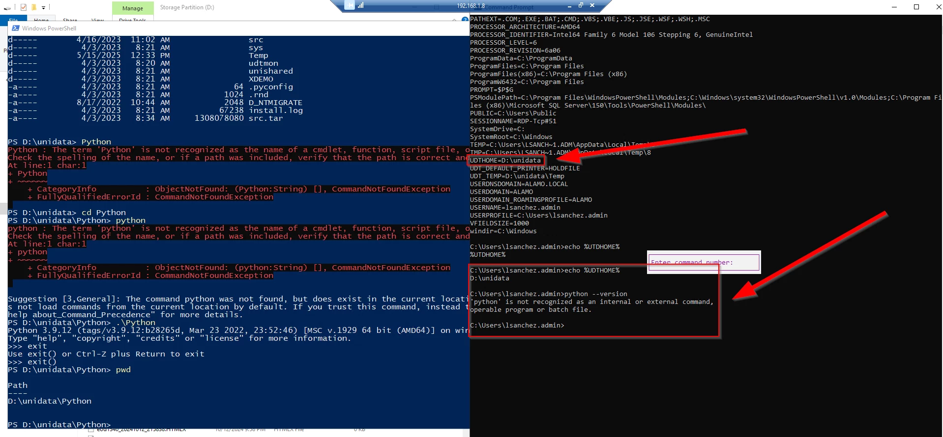 Based on your UDTHOME you can see that unidata is in D:\\UNIDATA. From there PYTHON will be in the PYTHON directory and PIP will be in the PYTHON\\SCRIPTS directory