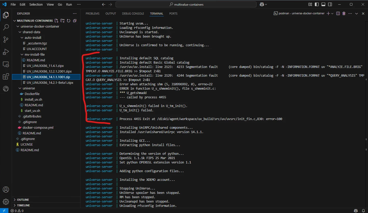 I'm using the unmodified Compose build from https://github.com/RocketSoftware/multivalue-containers