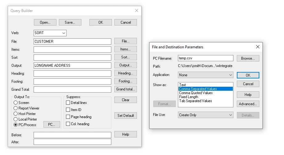 From our previous conversations I recall you use Wintegrate and this gives you access to a host of other options to put data into Excel, these include the File Export option from the Run Option at the top of screen that allows many formats to be converted to including comma delimited, there is also a Query Builder from the same Run menu that allows many output options, there are also wintegrate api's allowing you to write directly to a excel spreadsheet. Please refer to the Wintegrate manuals for more information on these options.