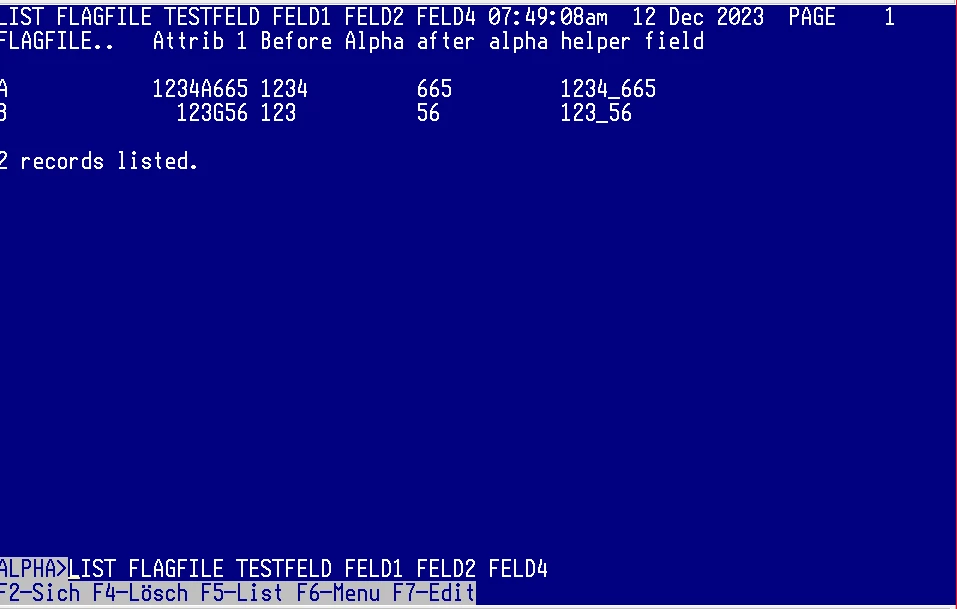 LIST TESTFILE F1 A1 08:06:47am 13 Dec 2023 PAGE 1