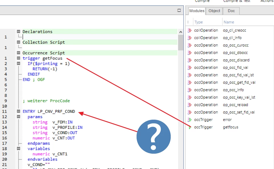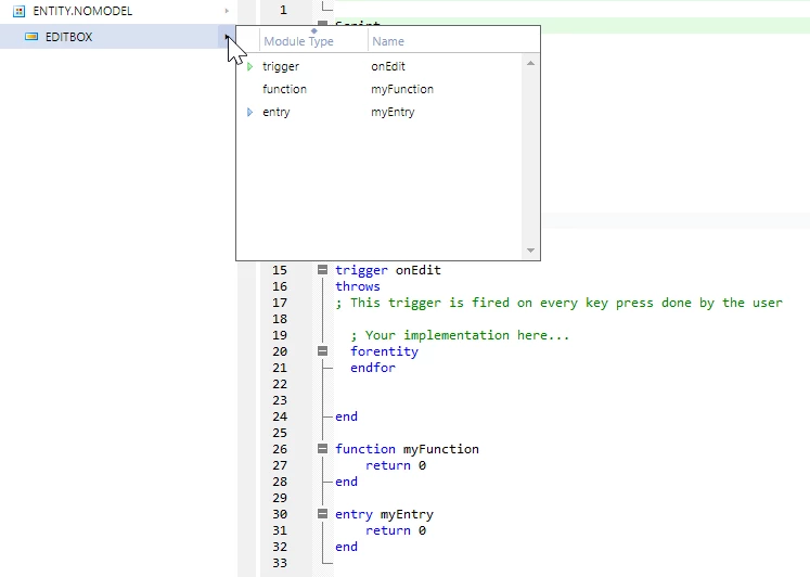 When you do have proc code on entity/field-level, the sidebar shows only operations/triggers.