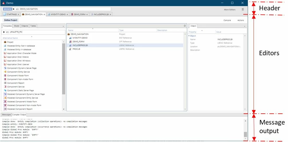 Uniface has a specific editor for every main development object. In the non-modal development environment, a developer can work on several objects in the same environment. Every open editor is identified by a tab.