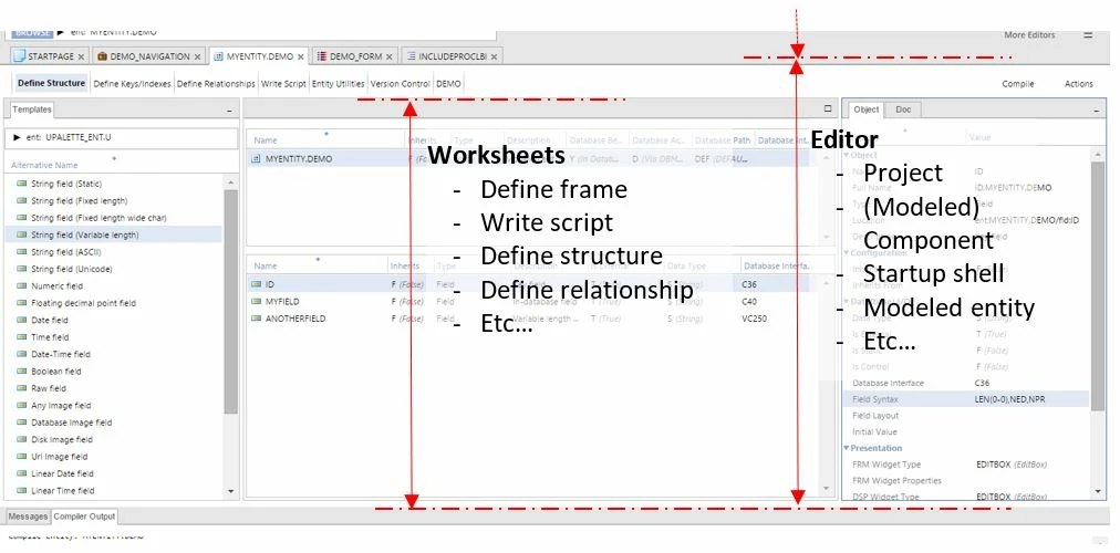 All main development objects have a dedicated editor in Uniface 10. When an object can only exist as a child of another object, that child must be maintained in an editor created for the parent.”. For instance, an entity painted on a component is the child of that component and must be maintained in the parent component’s editor.