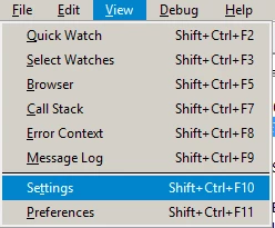 i can't open the "Settings" menu in uniface debugger under "View" > "Settings" any more.