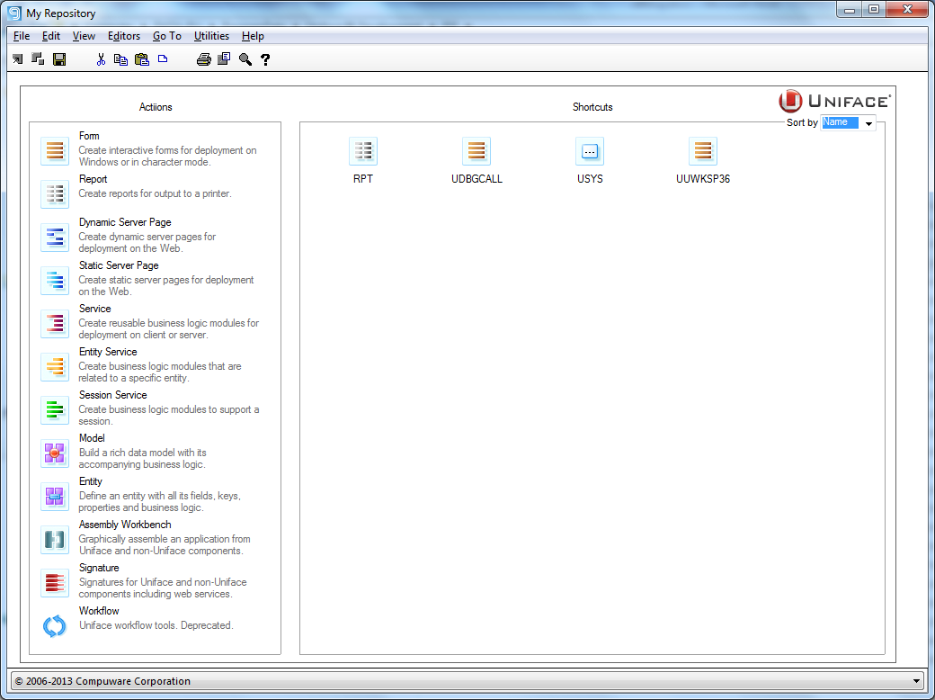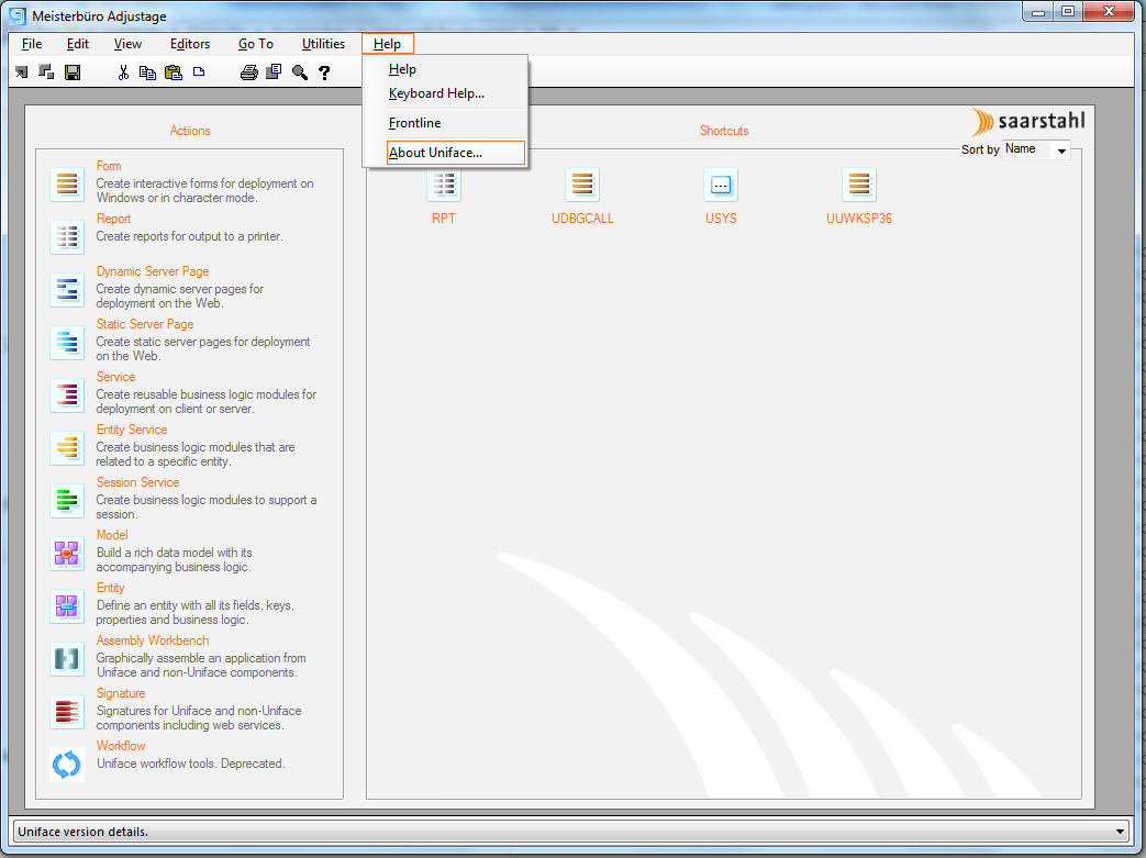 At Compuware we talk a lot about modernizing Uniface applications. I have found that changing just the main screen often has a big impact on how end users perceive an application. So I decided to have a go at the main screen of our Uniface 9.6 IDF. This screen has not been changed since it was introduced in Uniface 9.1 in the year 2004: