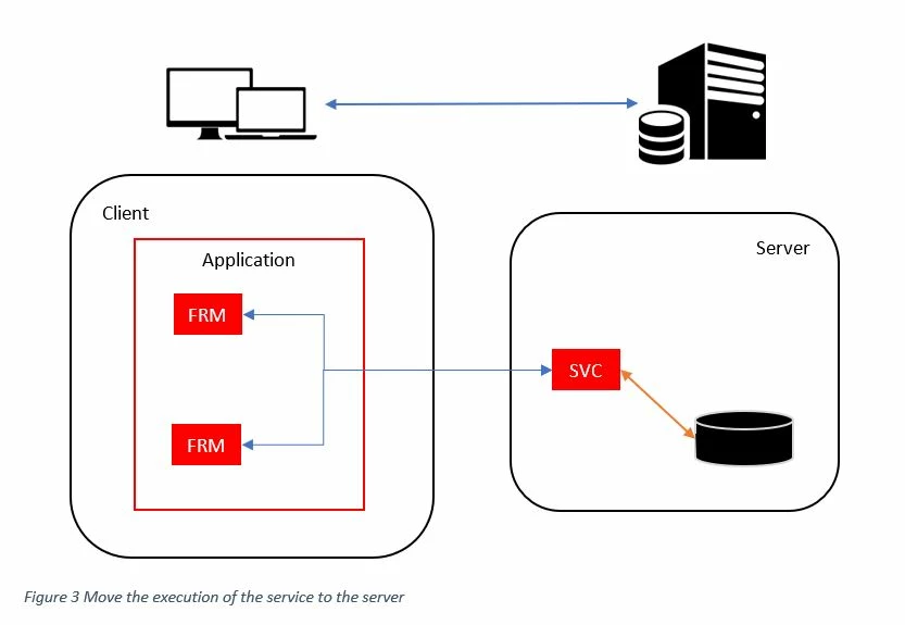 Now, when the service is activated from the form, the processing is executed on the server – without any modification to the application! Suddenly the application is multi-tier.