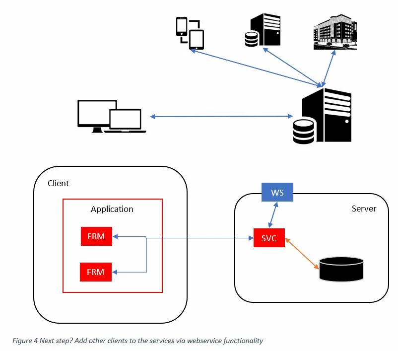 Look at Figure 4. By adding a webservice to the configuration, all of a sudden, the Uniface service can be used by and/or in any other technology!