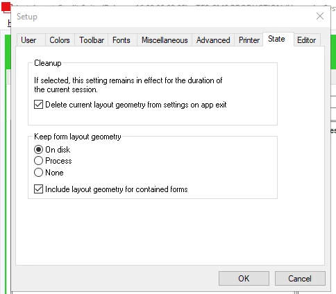 The users change the session settings such as the format of the GUI screens and in the previous version were able to make those persist by clicking the following....